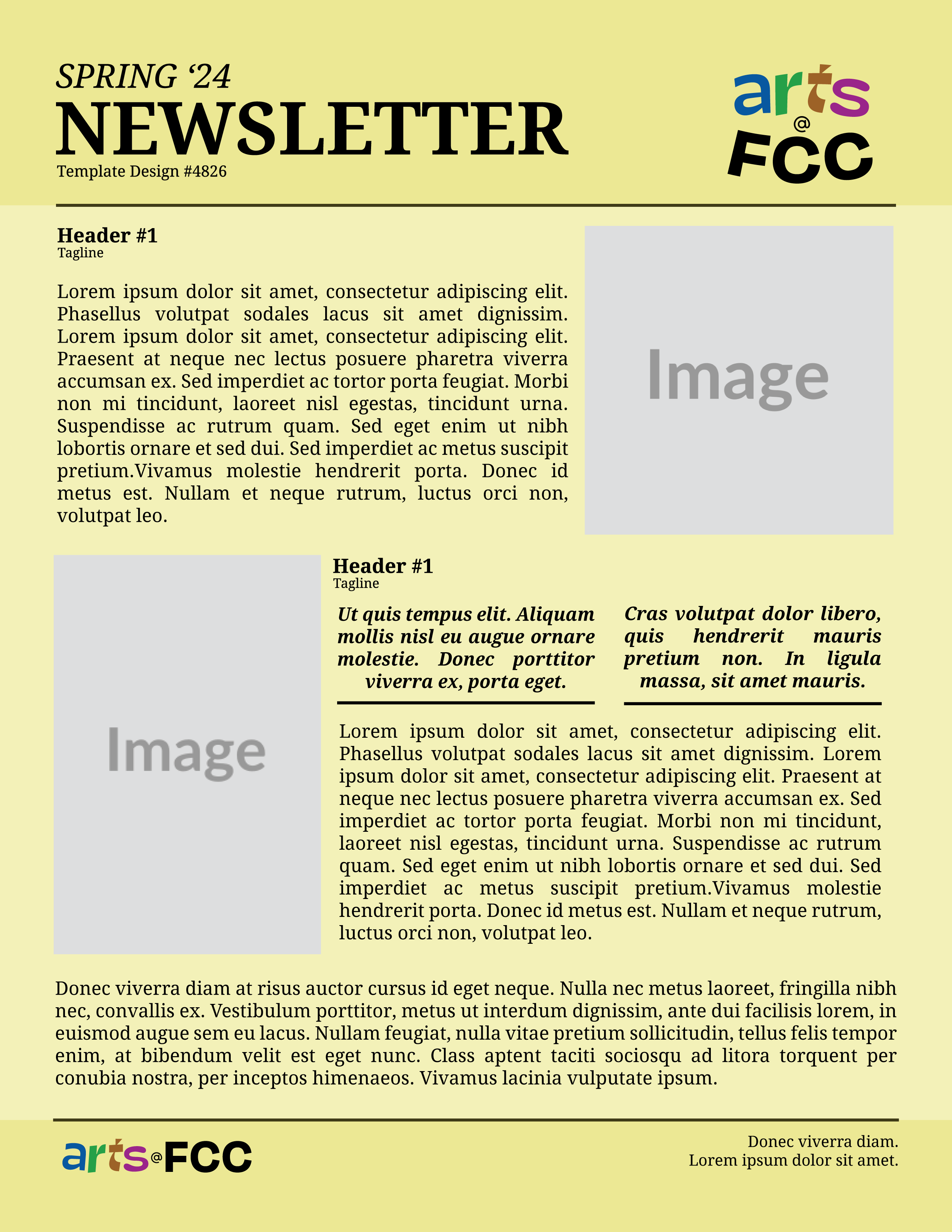 Logo and identity design for the Arts @ FCC program. Balances professionalism and play in the wordmark for its identity.